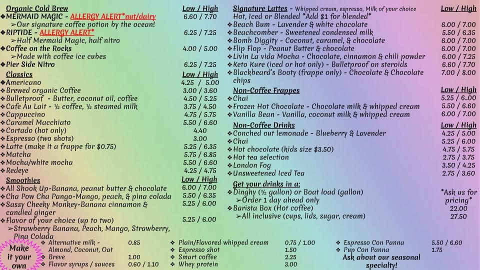 - Signature Cold Brews: Try their exciting Pier Side Nitro or the fun Mermaid Magic.